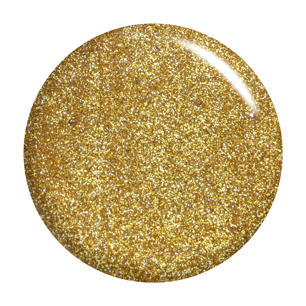 Run the show with this translucent polish full of gold shimmer.