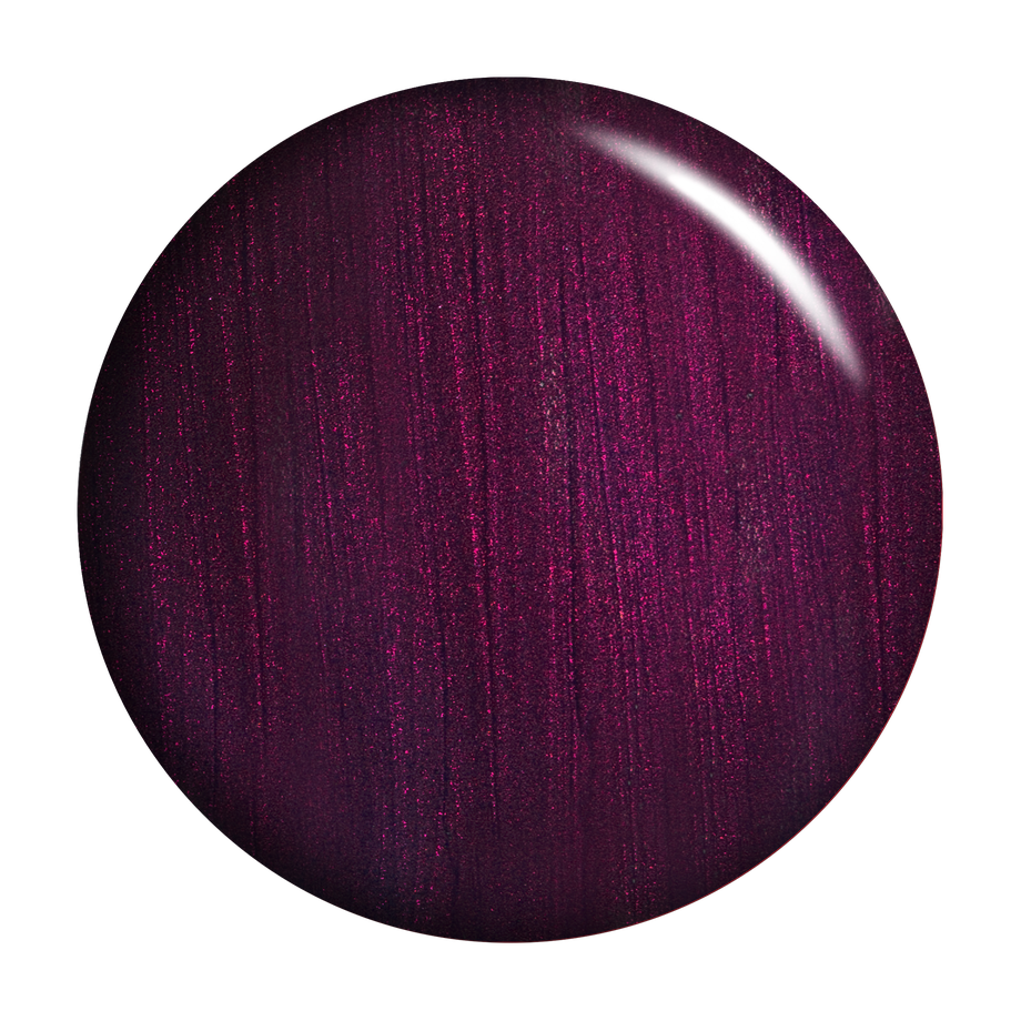 Dark plum. Pearl finish. Purple iridescence. Sheer. Warm undertone.